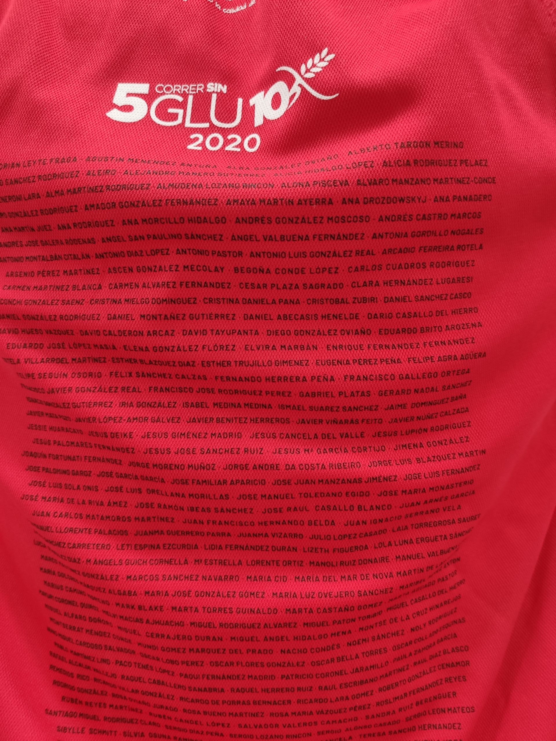 Camiseta técnica conmemorativa de la 5ª Carrera Correr sinGLU10 (2020)
