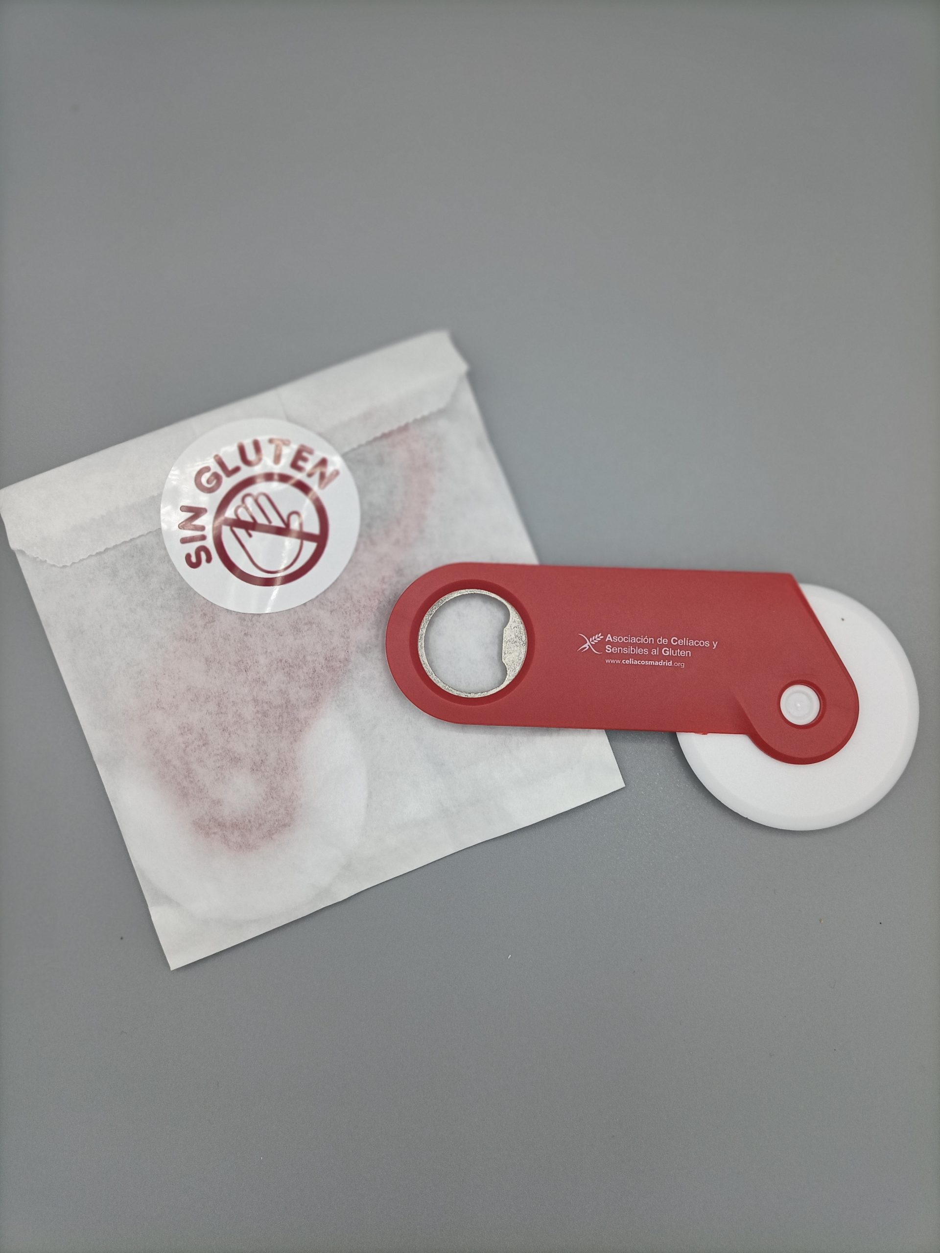 Cortador de pizza. Con abrebotellas. 132 x 63 x 8 mm