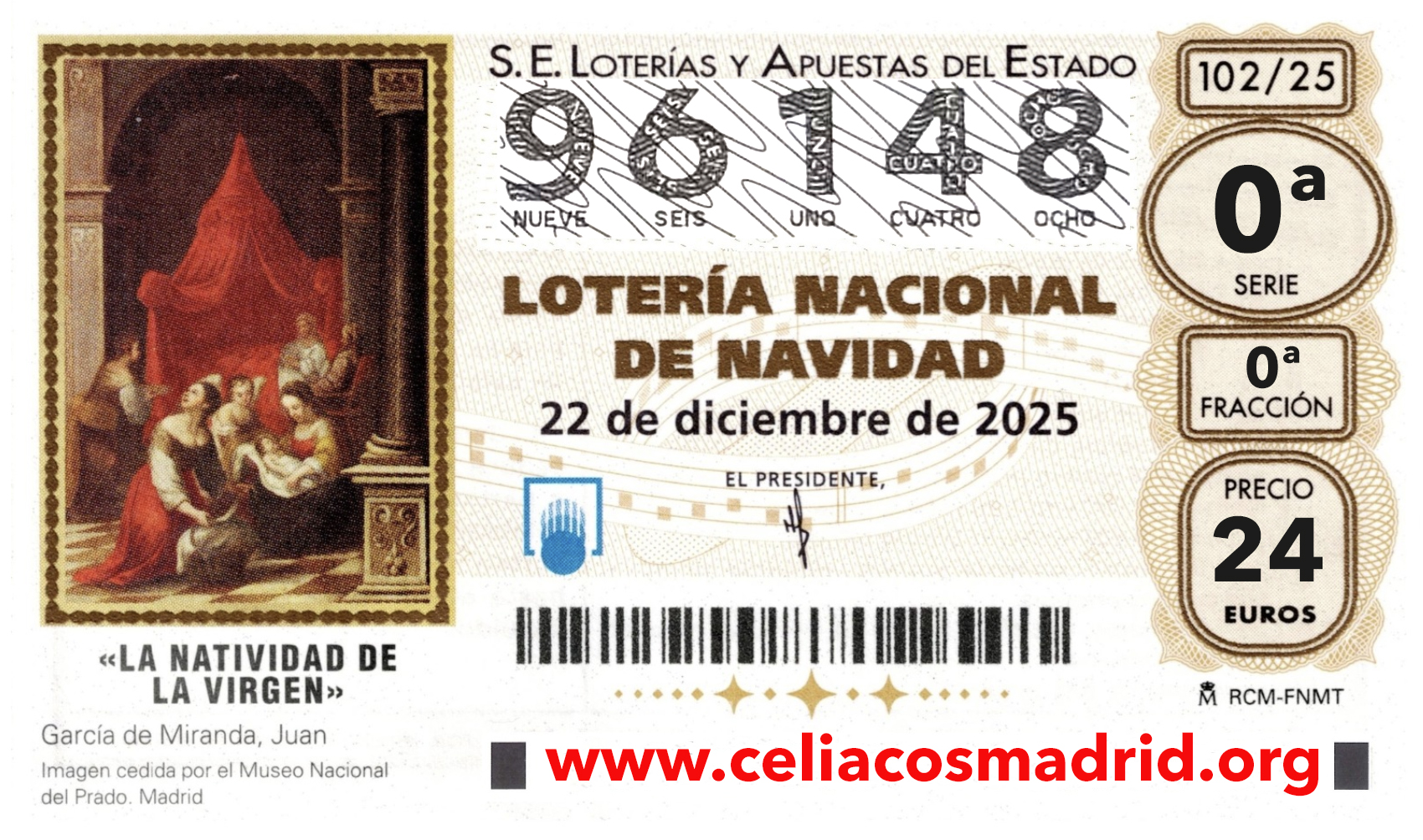 Con la compra de cada décimo de la Asociación se juegan 20 euros al número y 4 euros son donativo para la Asociación.