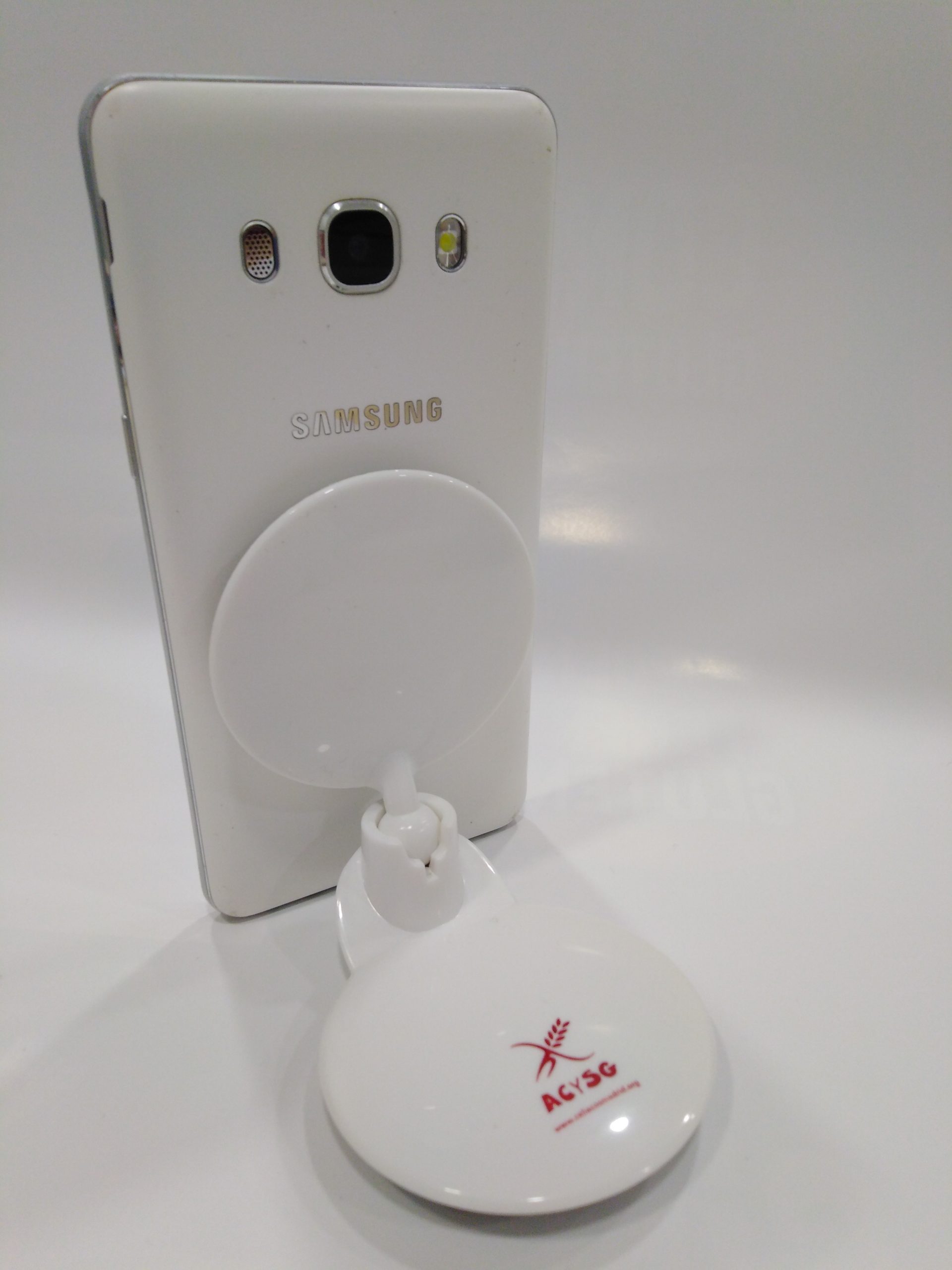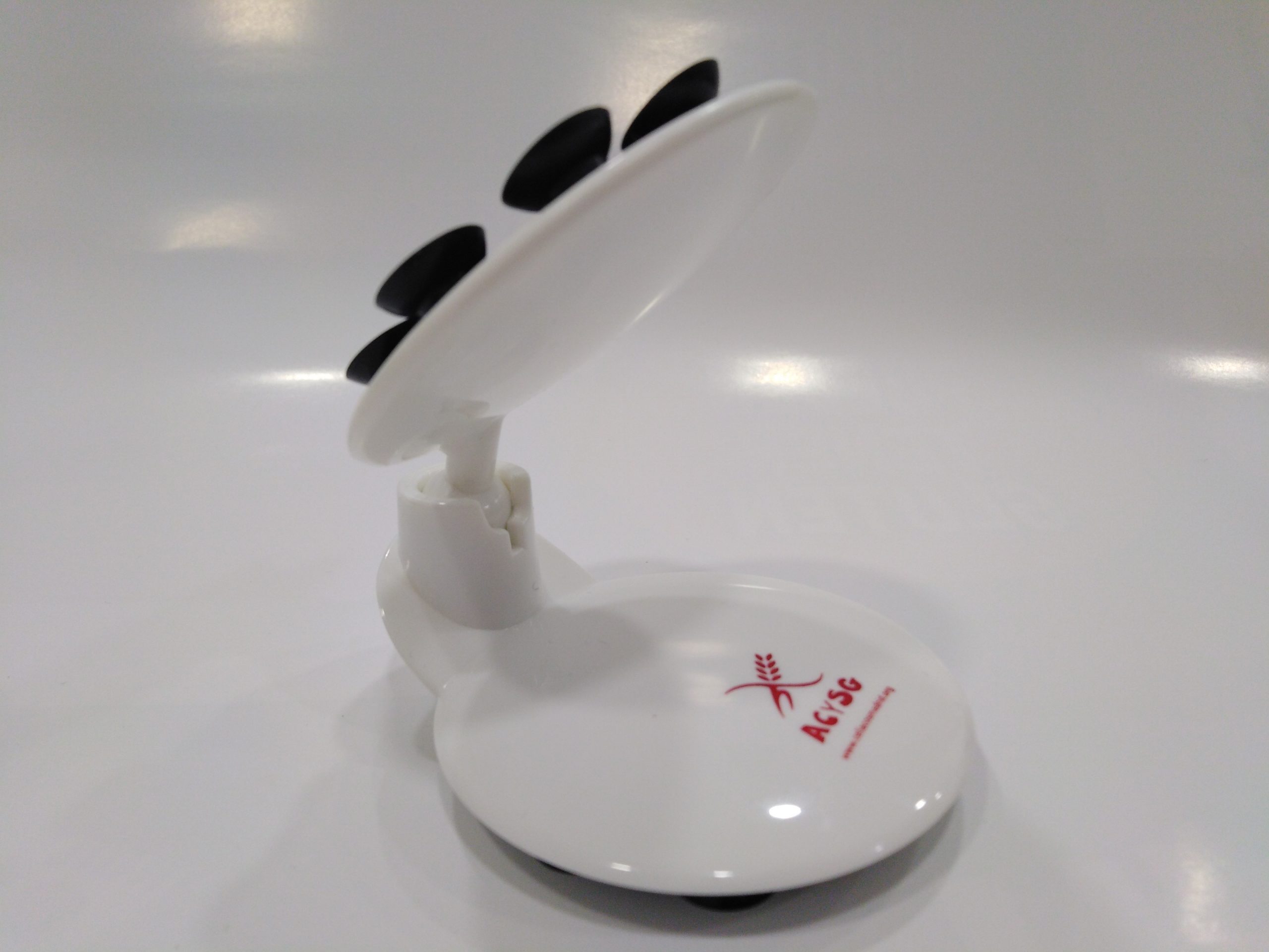 Soporte para dispositivos móviles con ventosas, plegable y articulado para utilizar en distintas superficies.
